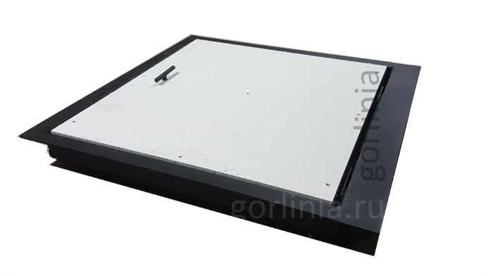 Заказное изделие прямоугольной формы с шарнирным соединением по большей стороне и узким световым лазом 550*400 при открытой двери.
