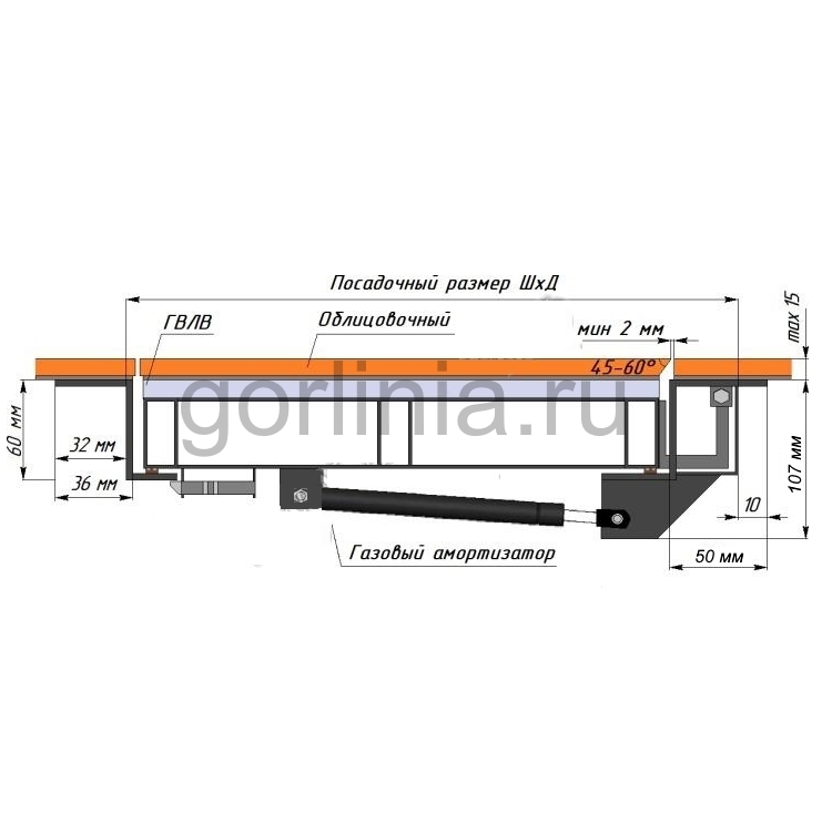 Облегченная модель без щелей в полу со смещенными за ось открывания петлями. Легкая ходовая часть и удобный монтаж. При формировании напольного отверстия обратите внимание на защитные кожухи шарниров. Коробки выходят за посадочную отметку по плечевой стороне.