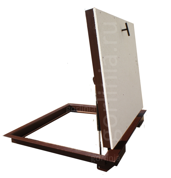 в проем 70х90 с устройством дополнительной опоры из уголка, профиля, бруска;