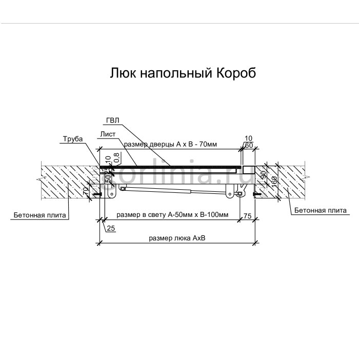 Рама без наличников выставляется в существующем отверстии 60*100 см с допусками, крепится в перекрытии через вертикальные пластины даже когда Ваш ремонт закончен и пол выложен керамогранитом или настелена ламинированная доска.