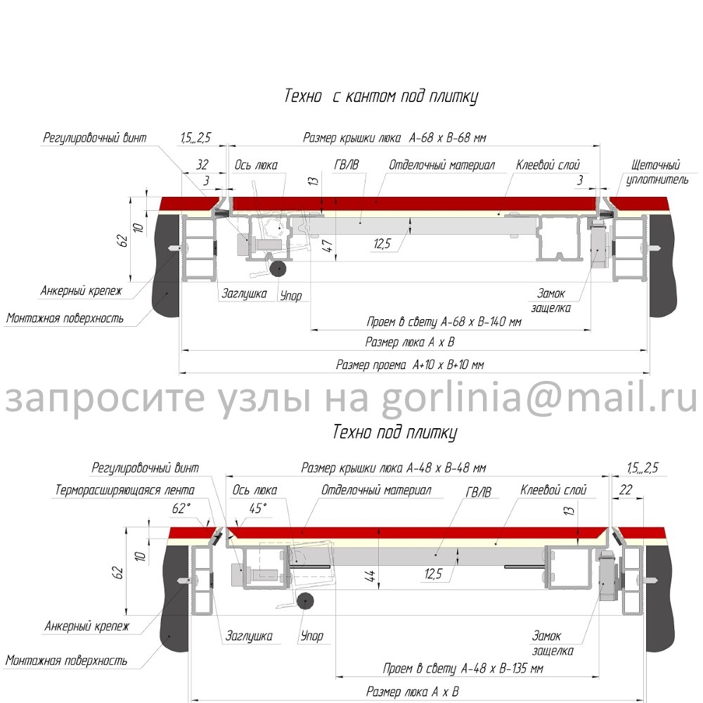 - без окантовки с открытыми торцами керамогранита, как у люков-невидимок.